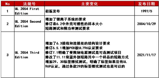 三、UL2054法规变更内容