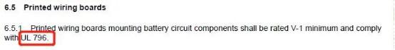 新法规:安装了电池电路元件的印刷线路板(PWB)需要至少V-1等级并满足UL 796。